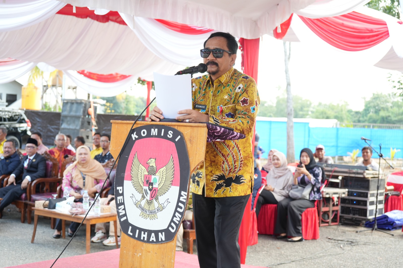 Pj Bupati Tanah Laut (Tala) H Syamsir Rahman menghadiri acara pelantikan dan pengambilan sumpah/janji Anggota Panitia Pemungutan Suara (PPS) se-Kabupaten Tala di Halaman Pertasi Kencana pada Minggu (26/5/2024).