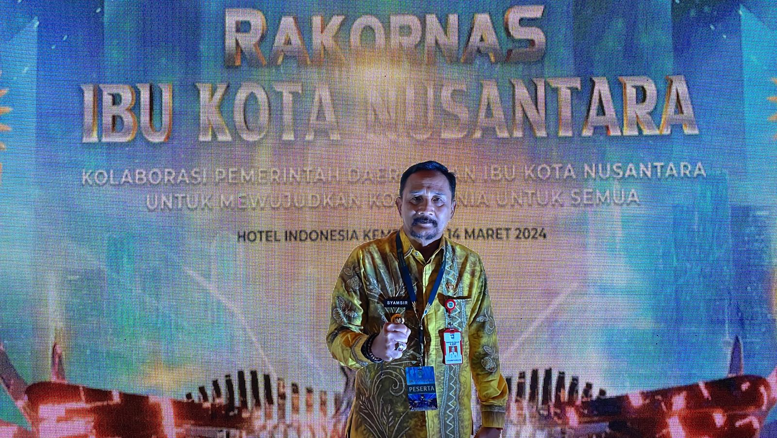 Pj Bupati Tanah Laut (Tala) H Syamsir Rahman menghadiri kegiatan Rapat Koordinasi Nasional (Rakornas) 2024, yang digelar Otorita Ibu Kota Nusantara (OIKN), dengan tema “Kolaborasi Pemerintah Daerah dan Ibu Kota Nusantara Untuk Mewujudkan Kota Dunia Untuk Semua” di Hotel Indonesia Kempinski, Jakarta, Kamis (14/3/2024).