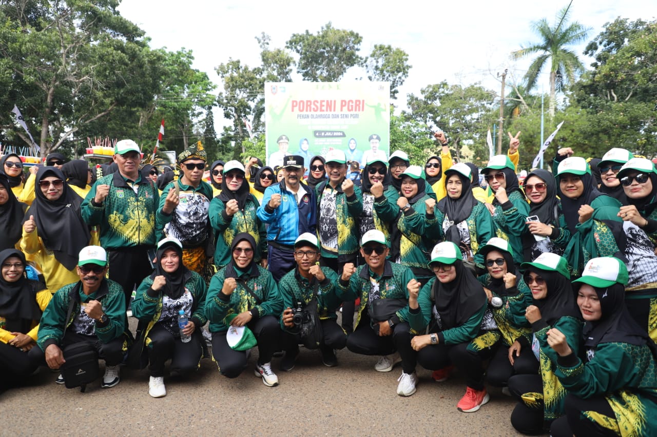 "Saya mengajak kepada seluruh peserta Porseni PGRI untuk menjunjung tinggi sportifitas dan semangat persaudaraan dalam bertanding. tunjukkan kemampuan terbaik, jadikan Porseni PGRI ini sebagai ajang untuk meningkatkan prestasi, kemampuan diri, sekaligus memupuk kebersamaan antara insan pendidik", pungkasnya.
