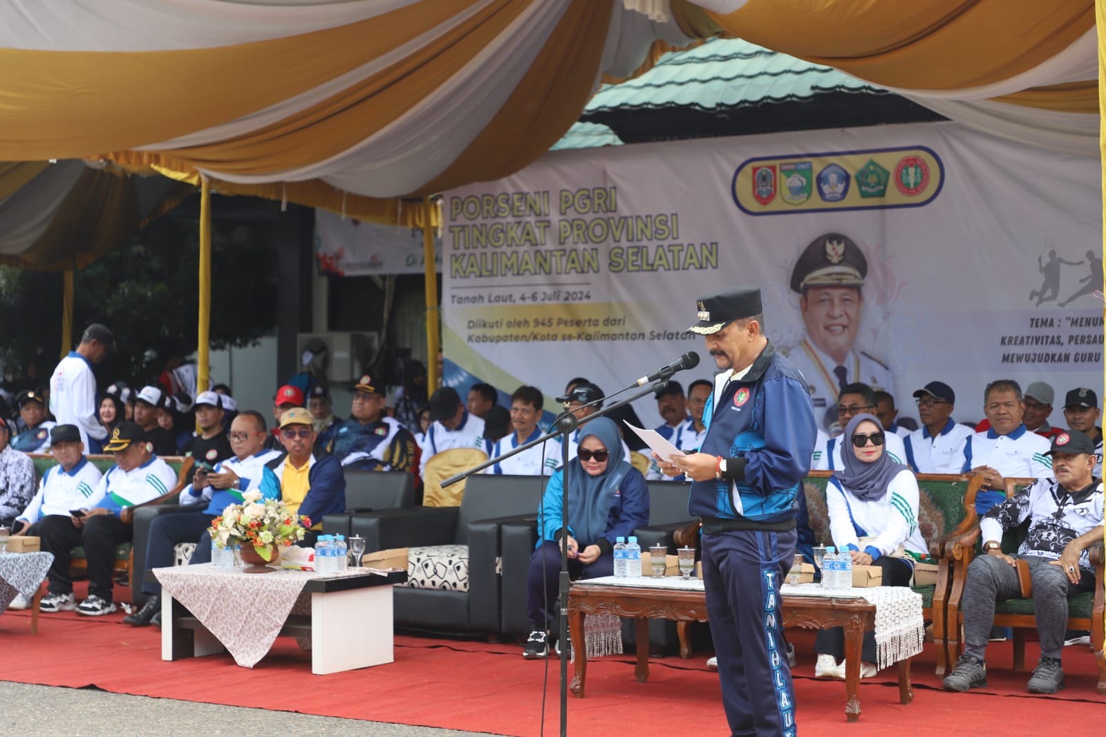 Pj Bupati Tanah Laut (Tala) H Syamsir Rahman menyambut baik terlaksananya Pekan Olahraga dan Seni (Porseni) Persatuan Guru Republik Indonesia (PGRI) tingkat Provinsi Kalimantan Selatan (Kalsel) di Tala tahun ini. Hal tersebut Ia sampaikan pada pembukaan Porseni PGRI di Halaman Pertasi Kencana Pelaihari, Kamis (4/7/2024).