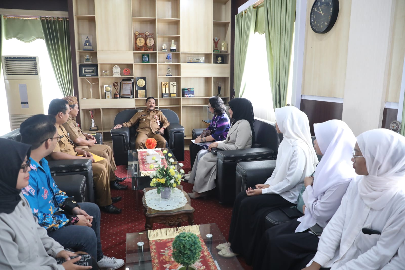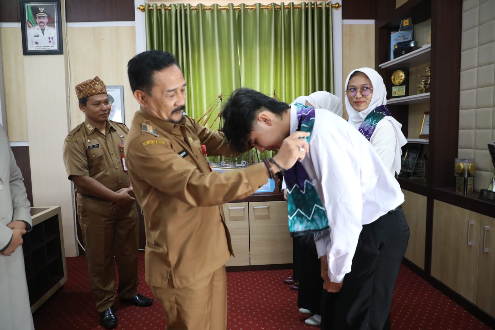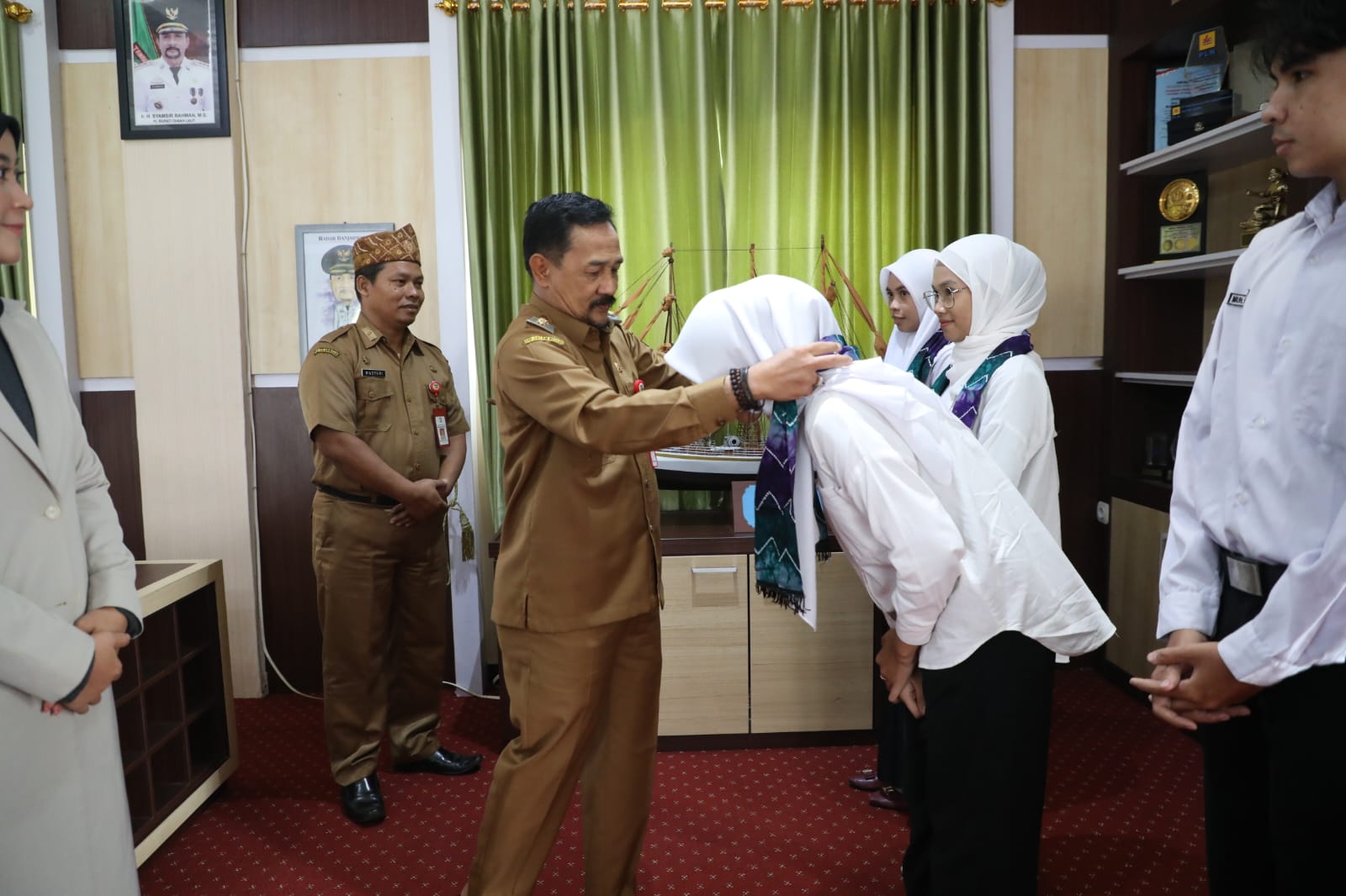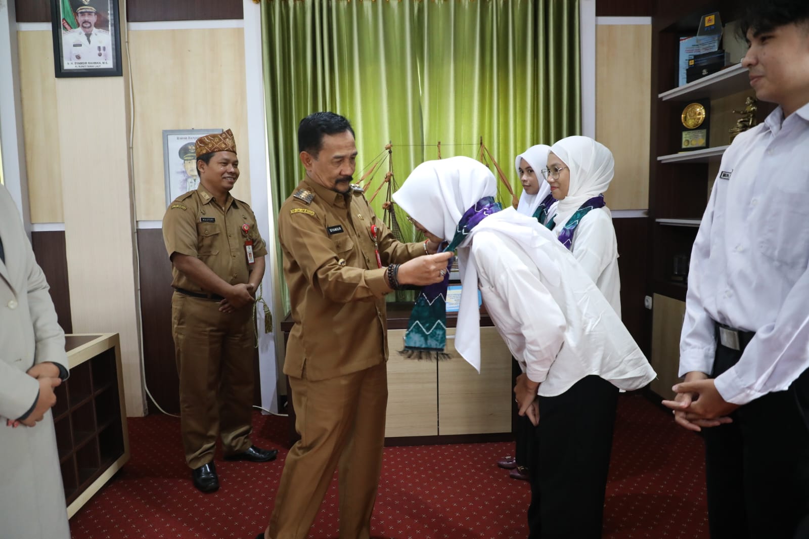 Pj Bupati Tanah Laut (Tala) H Syamsir Rahman melepas enam siswa peserta LPK Pusat International Study Connect (PISCO) Tala untuk mengikuti program magang ke Jepang. Audiensi sekaligus pelepasan dilakukan di Ruang Kerja Bupati, Selasa (19/3/2024).