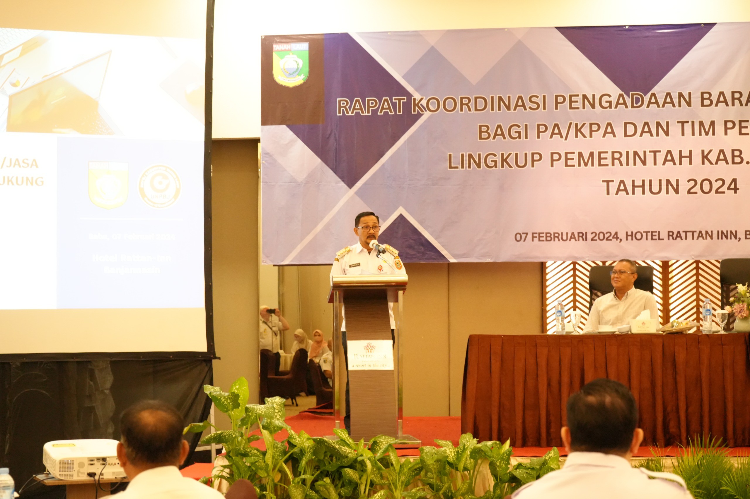 Pj Bupati Tanah Laut (Tala) Syamsir Rahman menjadi pembina Apel Siaga Pengawasan Masa Tenang, Pemungutan, dan Perhitungan Suara Pemilu 2024 di Halaman Stadion Pertasi Kencana Pelaihari pada Minggu (11/2/2024).