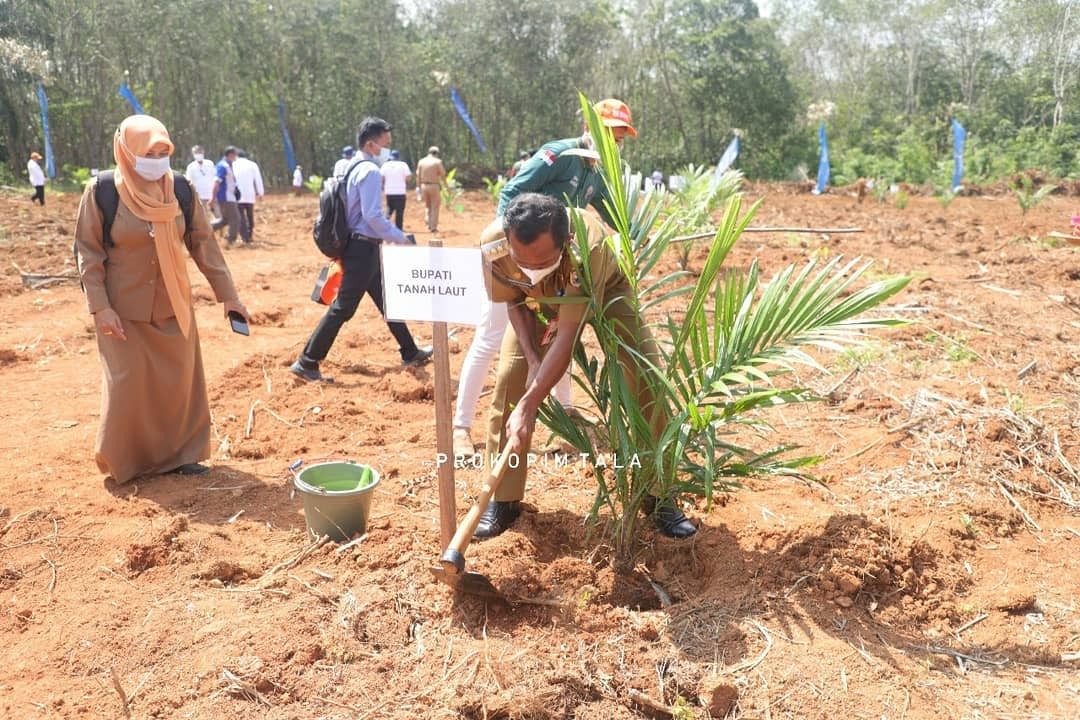 Bupati Tanah Laut (Tala) HM Sukamta menebar benih ikan gabus sebanyak 15 ribu benih di kawasan Danau Bom Kelurahan Pelaihari, Kamis (15/4/2021). Penebaran benih ikan gabus ini sebagai upaya pengendalian penyebab inflasi terbesar di Kalimantan Selatan (Kalsel), dan didukung sepenuhnya oleh Pemerintah Provinsi (Pemprov) Kalsel melalui Dinas Kelautan dan Perikanan (Dislakan) yang memberikan benih ikan gabus atau juga dikenal dengan sebutan iwak haruan sebanyak 33 ribu.