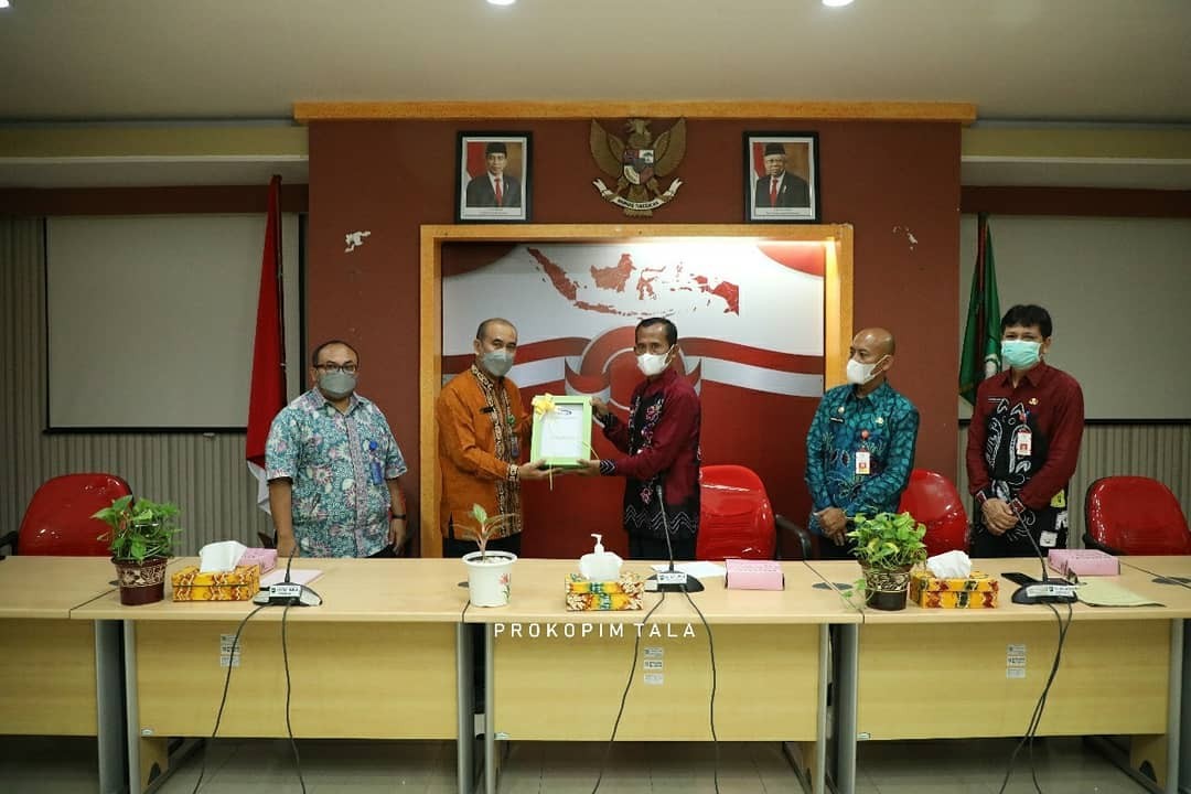 Keterangan Gambar : Komandan Satuan Tugas (Dansatgas) Dandim 1009/Pelaihari Letkol Inf Adi Yoga Susetyo menyerahkan hasil TMMD ke-111 kepada Bupati HM Sukamta, Rabu (14/7/2021)